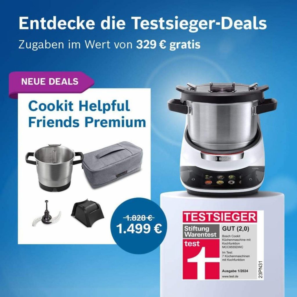 Erhalte bei mir mit dem Helpful Friends Premium Deal : ein Crushmesser, einen zweiten 3L-XL-Topf, die Lifter Umfüllhilfe und die Zubehörtasche gratis. Sicher dir das größte Cookit Angebot aller Zeiten und spare dabei 329 € im Vergleich zum Einzelkauf.